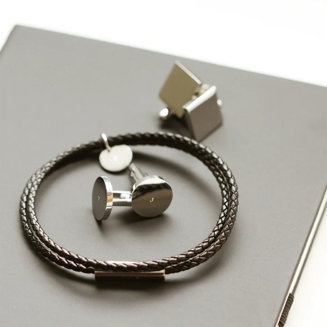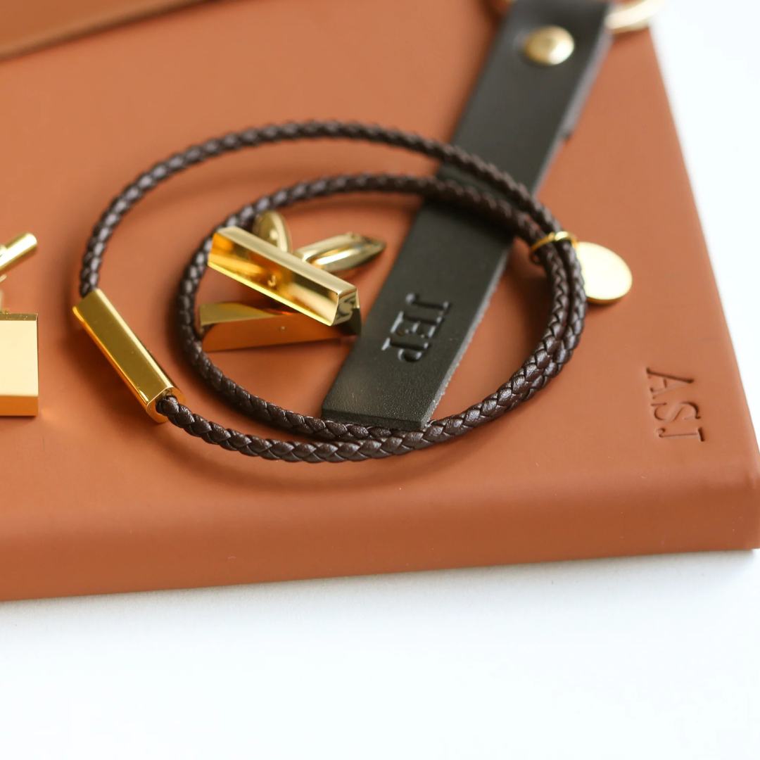 A more masculine bracelet, but perfect for everyone, our Faux Leather Rope Bracelet comes with a chunky Gold or Silver Bar on which you can choose to have initials handstamped. With a magnetic close, these bracelets are sleek and personal much like the rest of our collection. The perfect gift to your loved ones or to yourself, these personalised bracelets are a must-have addition to your accessory collection. Choose either up to 2 initials next to one another or up to 4 spread out.