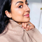 Kim B.      I purchased the Ariadne earrings in silver and love them so much! I chose to personalise them with my initial and my partners initial on the other stud. The posts are dainty, making them unbelievably comfortable to wear and sleep in!