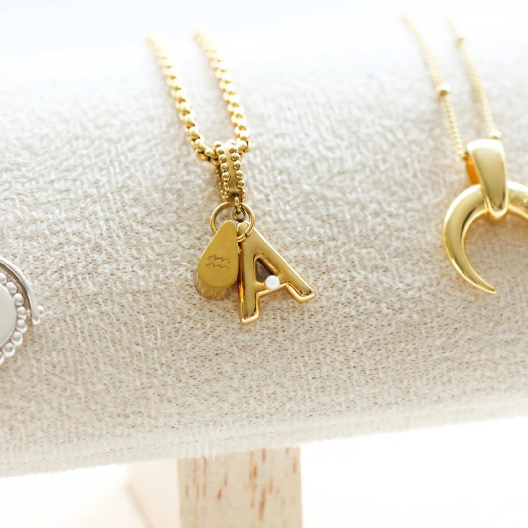 This piece is unlike the rest of our collection, with its main pendant in the shape of an initial. This stunning necklace allows you to combine your initial & zodiac sign (or multiple initials) with the pairing of initial pendant and THEA Teardrop pendant (included in the price).