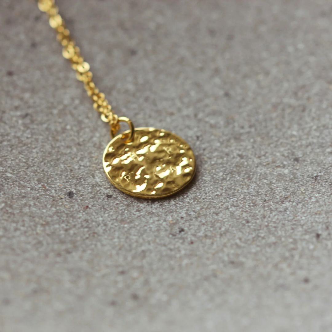 OLIVE Hidden Initial Hammered Disc Necklace (Gold Vermeil / Sterling Silver)