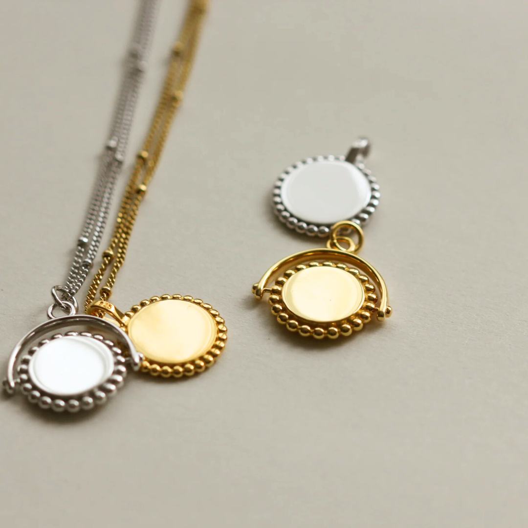 Our SOLEIL Necklace, named because it makes us think of sunshine, is absolutely stunning. A simple disc trimmed with intricate beading, this necklace is a must have for your jewellery collection. Perfect on its own or layered with our other pieces such as the OLIVE or DISCO Spinner, the chains feature a needle and ball attachment meaning you can shorten or lengthen the chain as much or as little as you’d like.