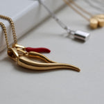 Our collab with Saff Michaelis, the SPICY MARG Chilli necklace is named after her gorgeous daughter Margot. The perfect pendants to spice up an outfit and your jewellery collection, choose from our XL Chilli, our Mini Chilli Duo (one red and one gold) or single Mini Chilli.