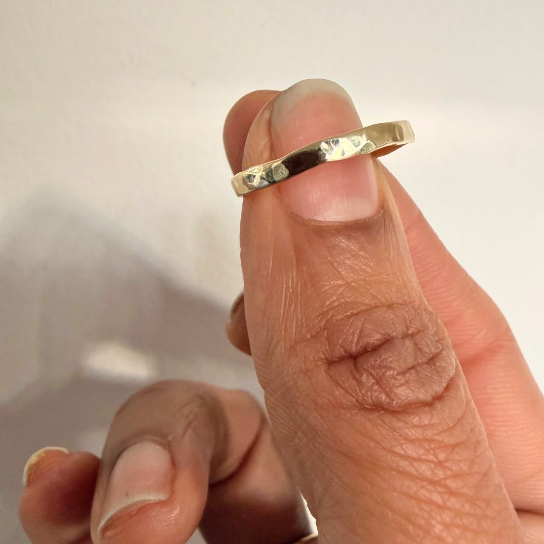 Choose from a range of sizes, finishes, and styles—from smooth to hammered textures—that can be customised with one or multiple initials. Our rings are thoughtfully designed to stack, mix, and match, allowing you to build a collection that reflects your unique journey.