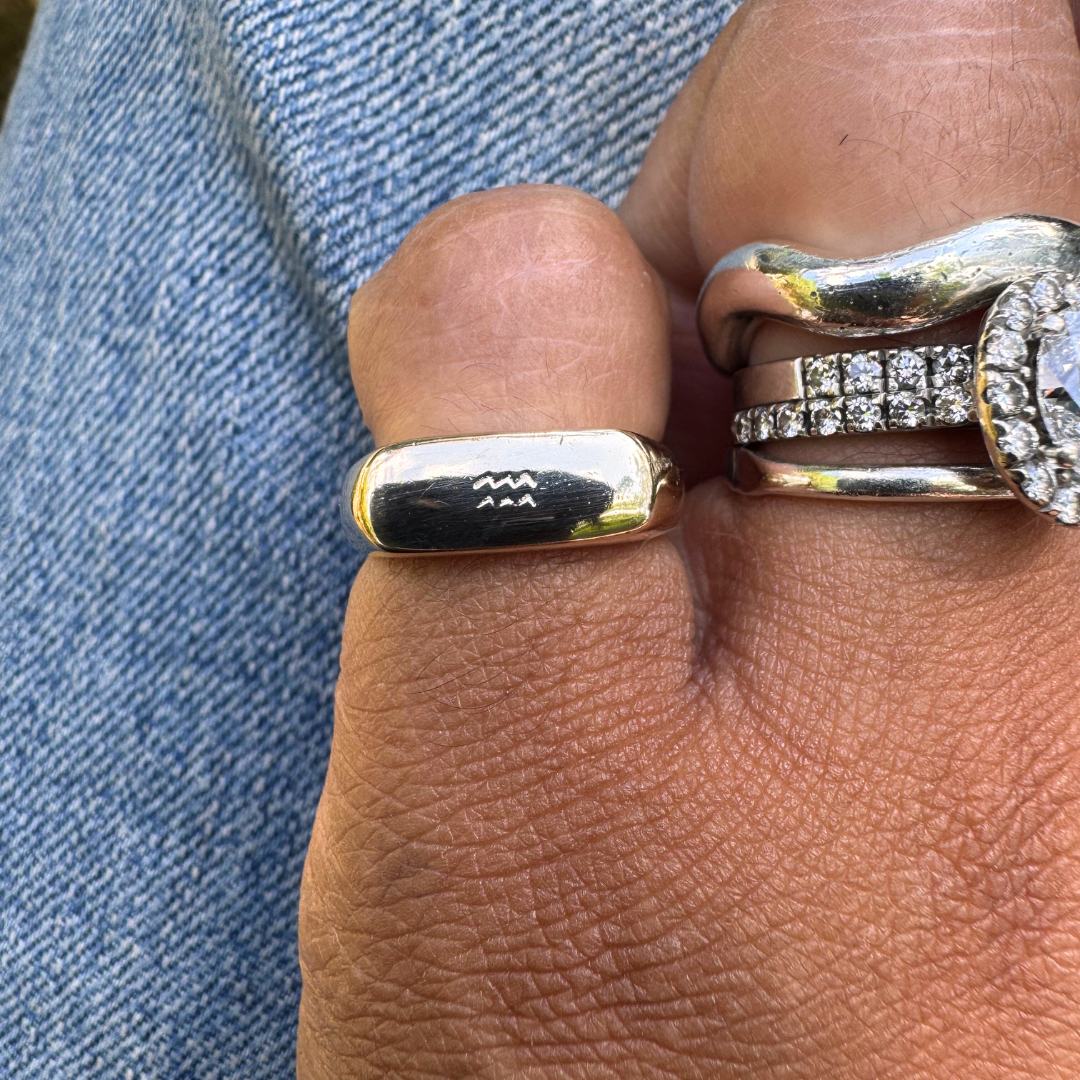 This luxury, handmade signet ring is the perfect addition to your heirloom collection. Made entirely from recycled gold or silver grain, this piece is the ultimate statement ring. This ring is suited to 1 initial or zodiac sign.