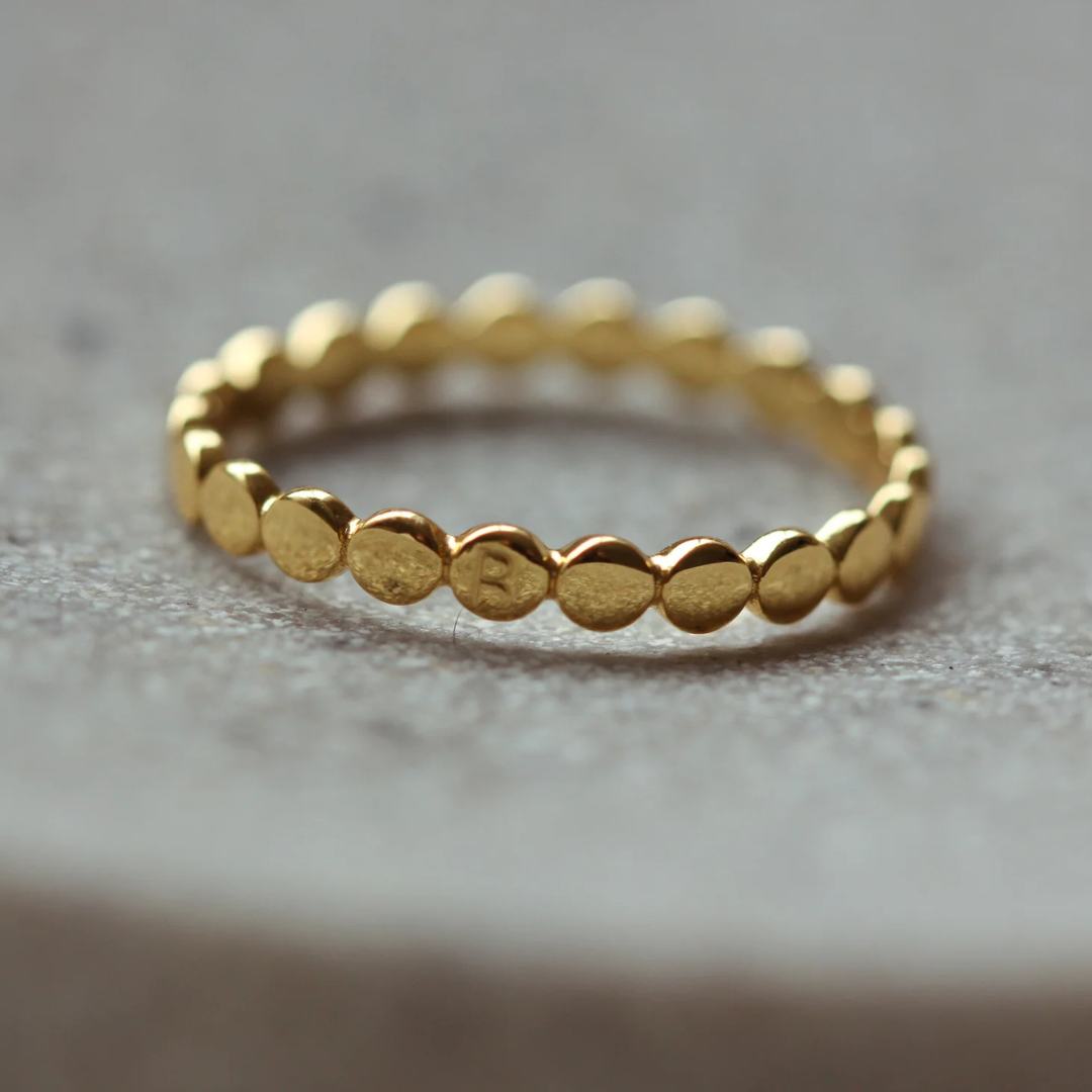 Our ROBYN Stacker Ring is the perfect way to celebrate a loved ones initial and makes a great gift. This ring comes in Sterling Silver and Gold Plated Sterling Silver. The Gold Plating is thicker than regular gold plating and longer lasting. Regular gold plating consist of 0.03 microns of Gold - our ROBYN ring is plated with 1 micron (our Gold Vermeil contains a layer of 2.5 microns of Gold).
