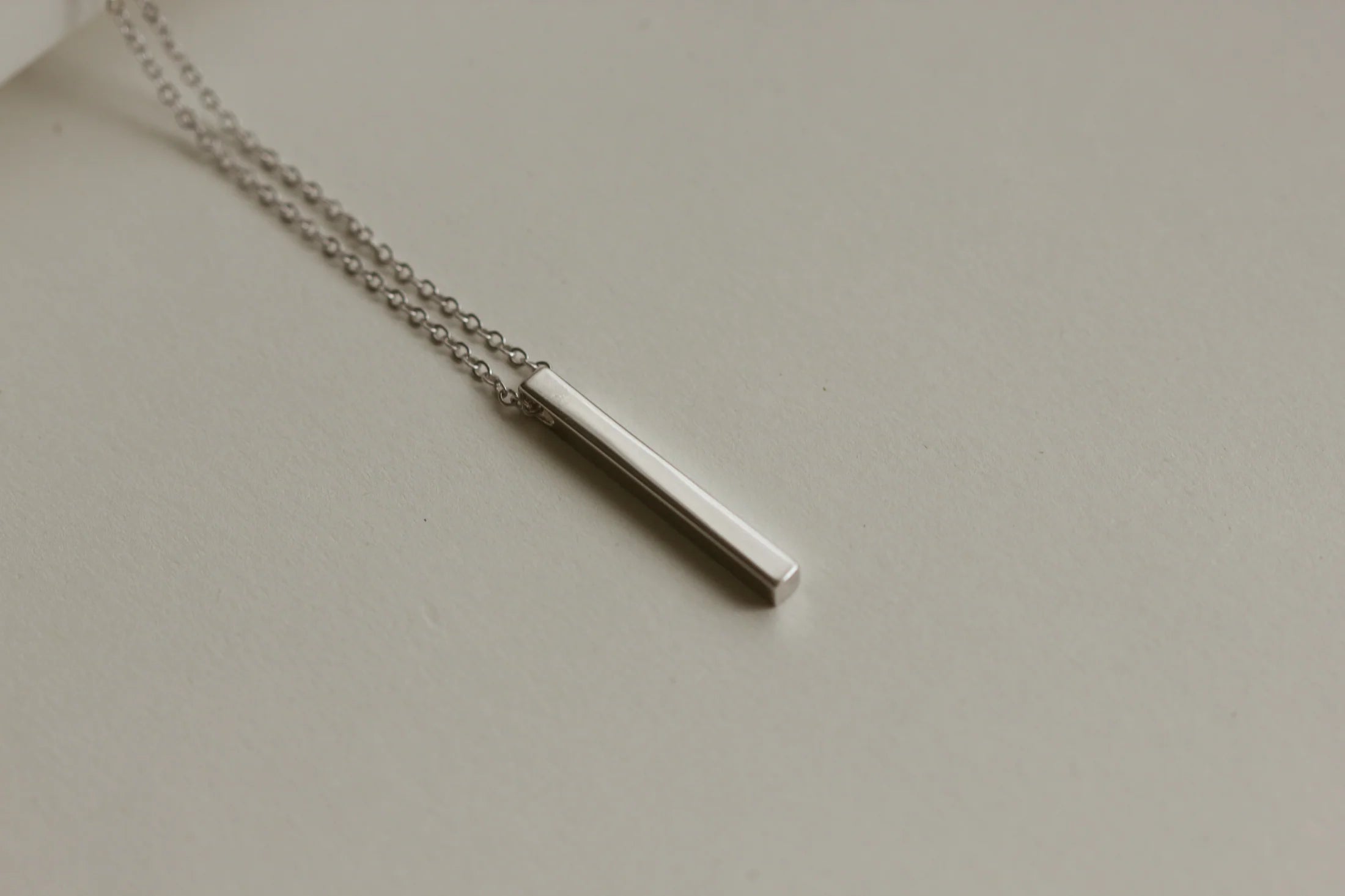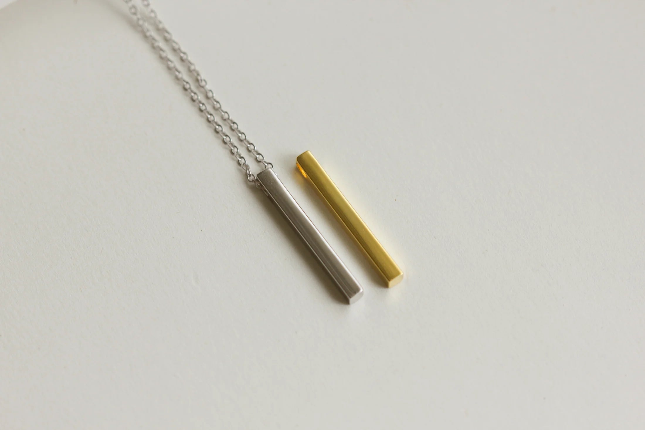 K B. I like the weight of the bar. It's classy and a bit different. One suggestion would be to have the initial on both sides of the bar as on the square pendant ( also purchased )